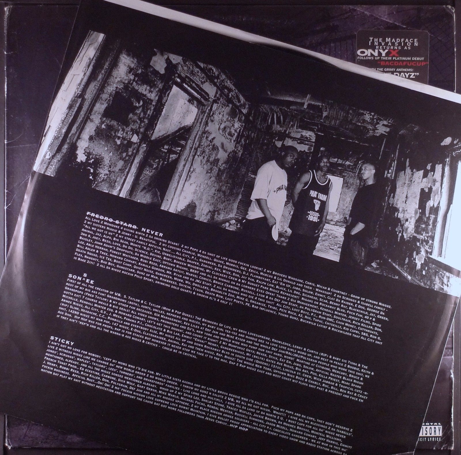 I got bacdafucup a while back and thought it was very humorous but still good rap. I got bacdafucup a while back and thought it was very humorous but still good rap. Onyx is an amazing rap group. All we got iz us evil streets 04.
